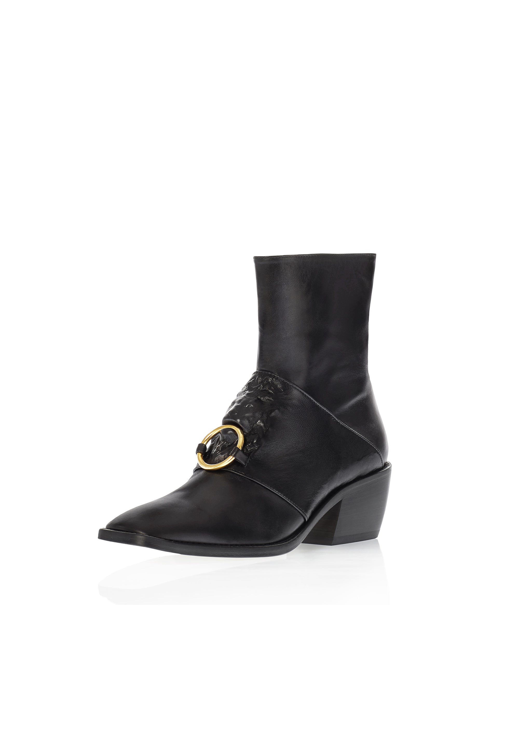 The Leone Bootie inspired by all the different doors in our life! Reminiscing of walking European cities & the curiosity about the great stories that can be told by majestic antique doors. Featuring a custom 3D Lion head as a symbol for courage, protection, to awaken the power from within! Texan boot – reimagined for the everyday life with its squared toe & super comfy blocky heel – 5cm; perfect height to enjoy & wear from day-to-night & create more #EmpoweringJourneys!